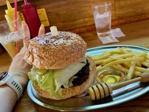 肉体労働(15分)のあとのハンバーガーは格別です!!